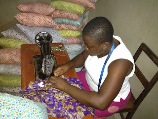 One of the ladies named Yawa who I have become really close to learned how to make purse/bags the other night during the sewing session. I wanted to be the ladies first customer so I asked Yawa if she would make me one and I would pay her for it. So...I picked out the articles of old clothing I wanted and she made me an absolutely amazing bag! The outside is made out of an old torn up sweater and the inside is a McDonalds work shirt. I paid her $20 and she almost cried she was so thankful!